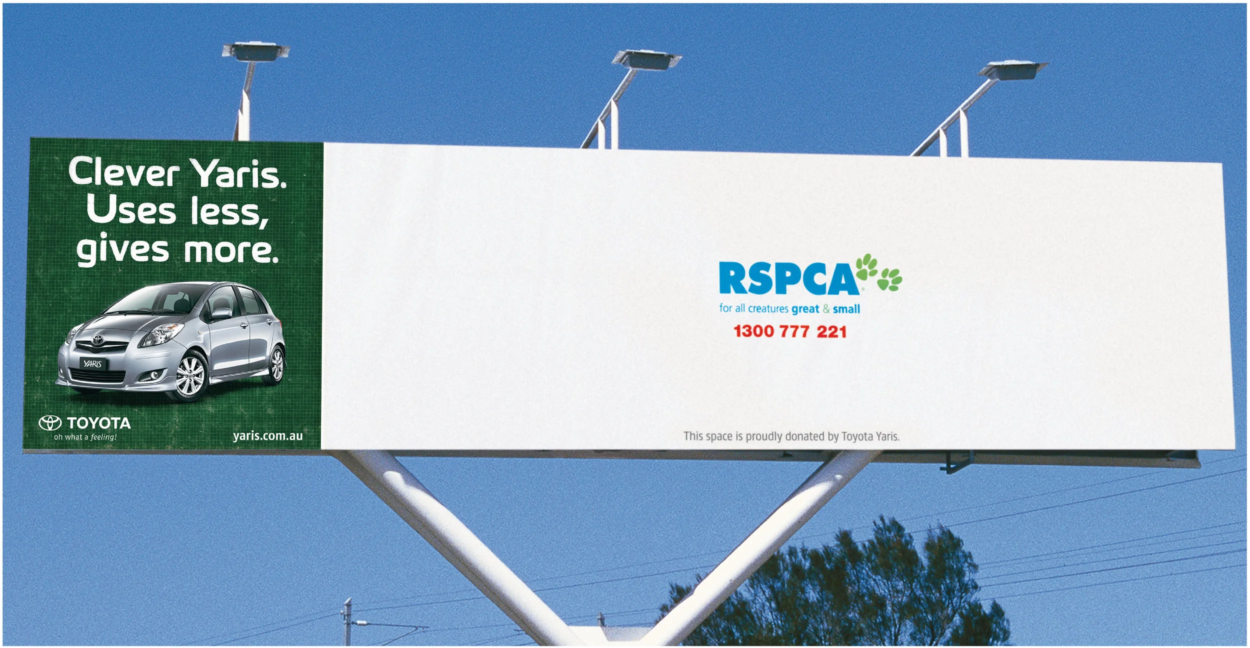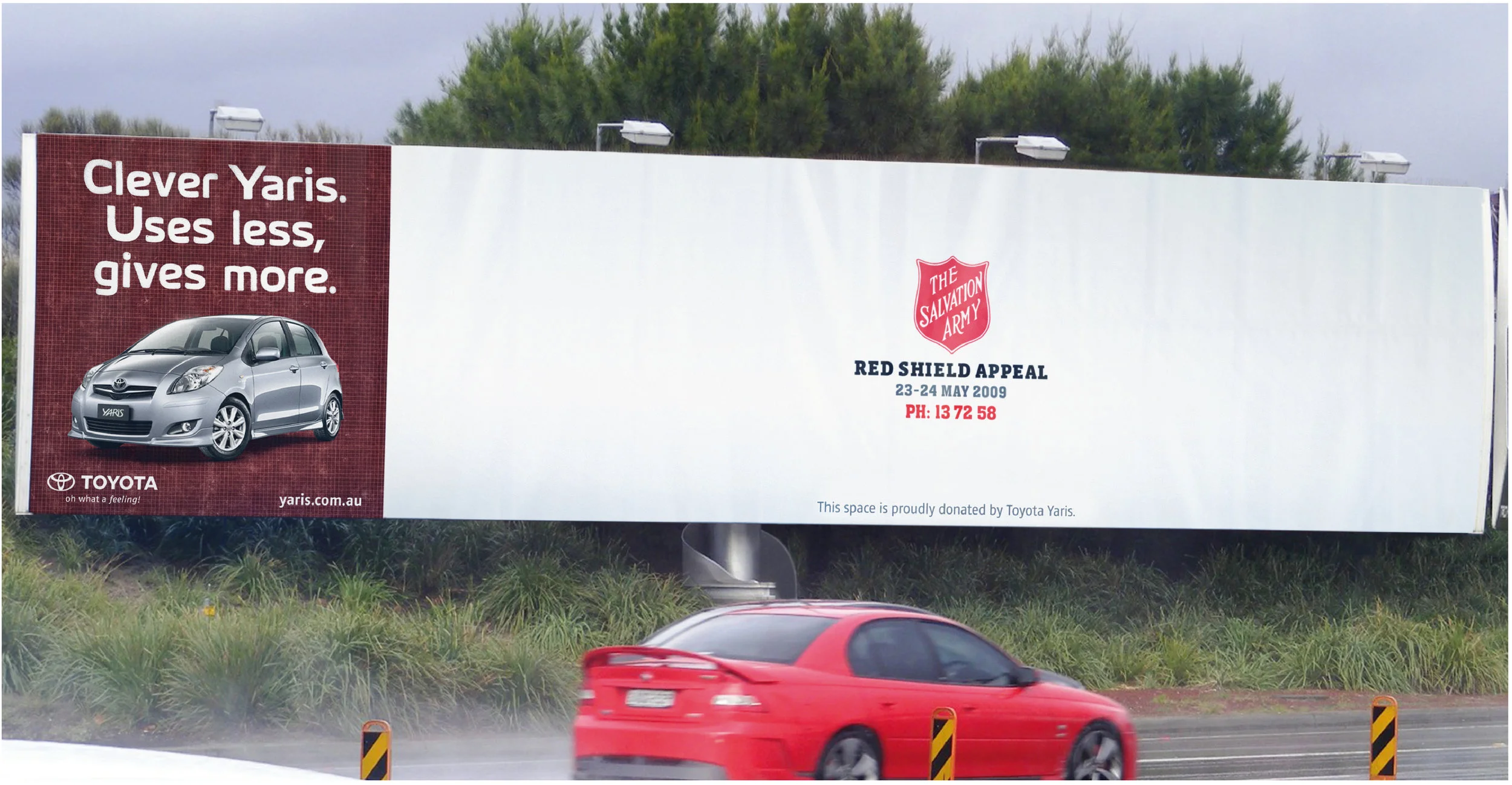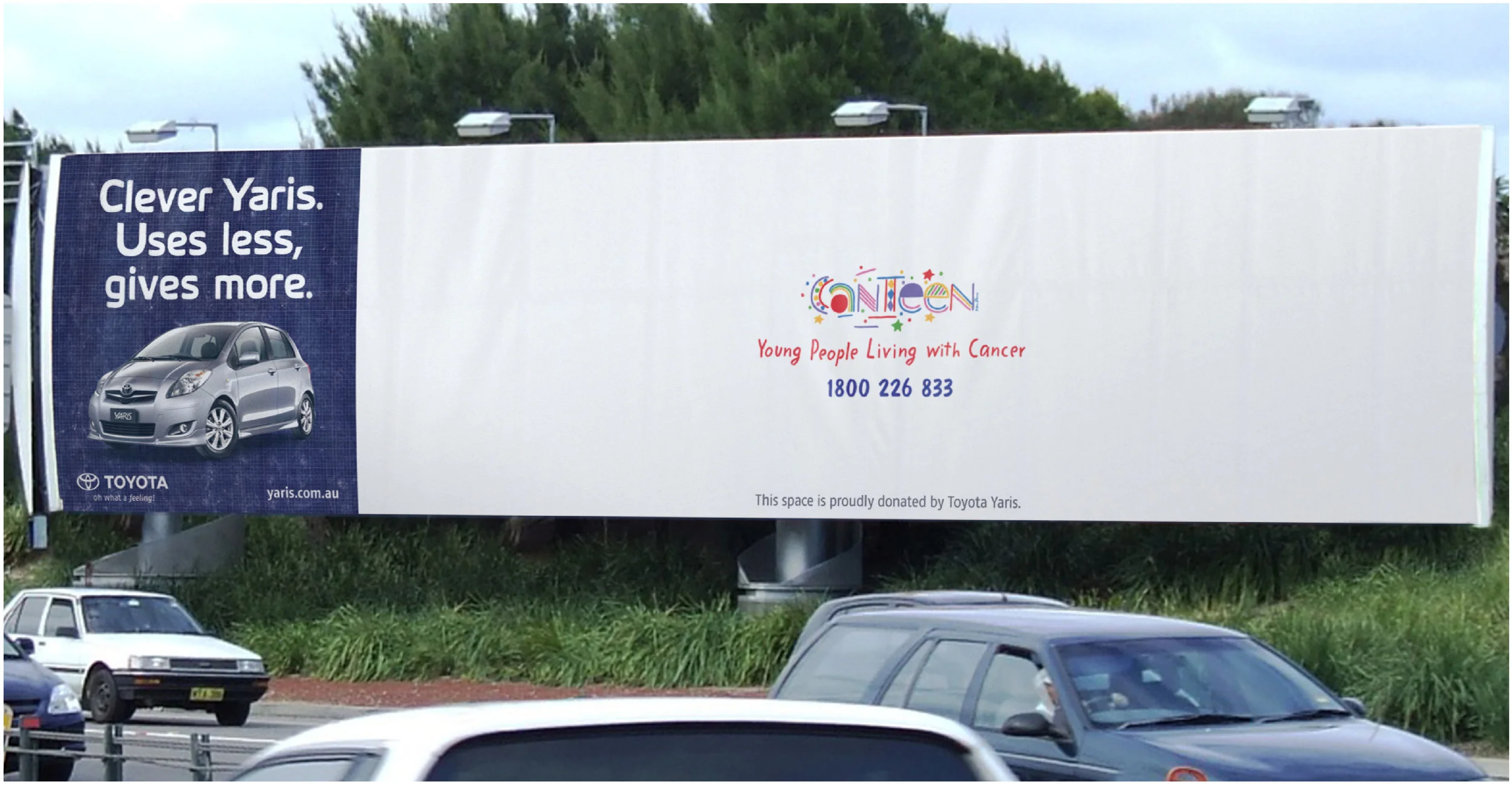 The clever little car that gives you more than you'd ever expect. To demonstrate this, we donated 2/3 of our outdoor space to a worthy cause, important Australian charities struggling to make a difference during the GFC. We gave each charity an entire month on some of the most prominent billboards in Australia, providing exposure to more than 240,000 cars per day.